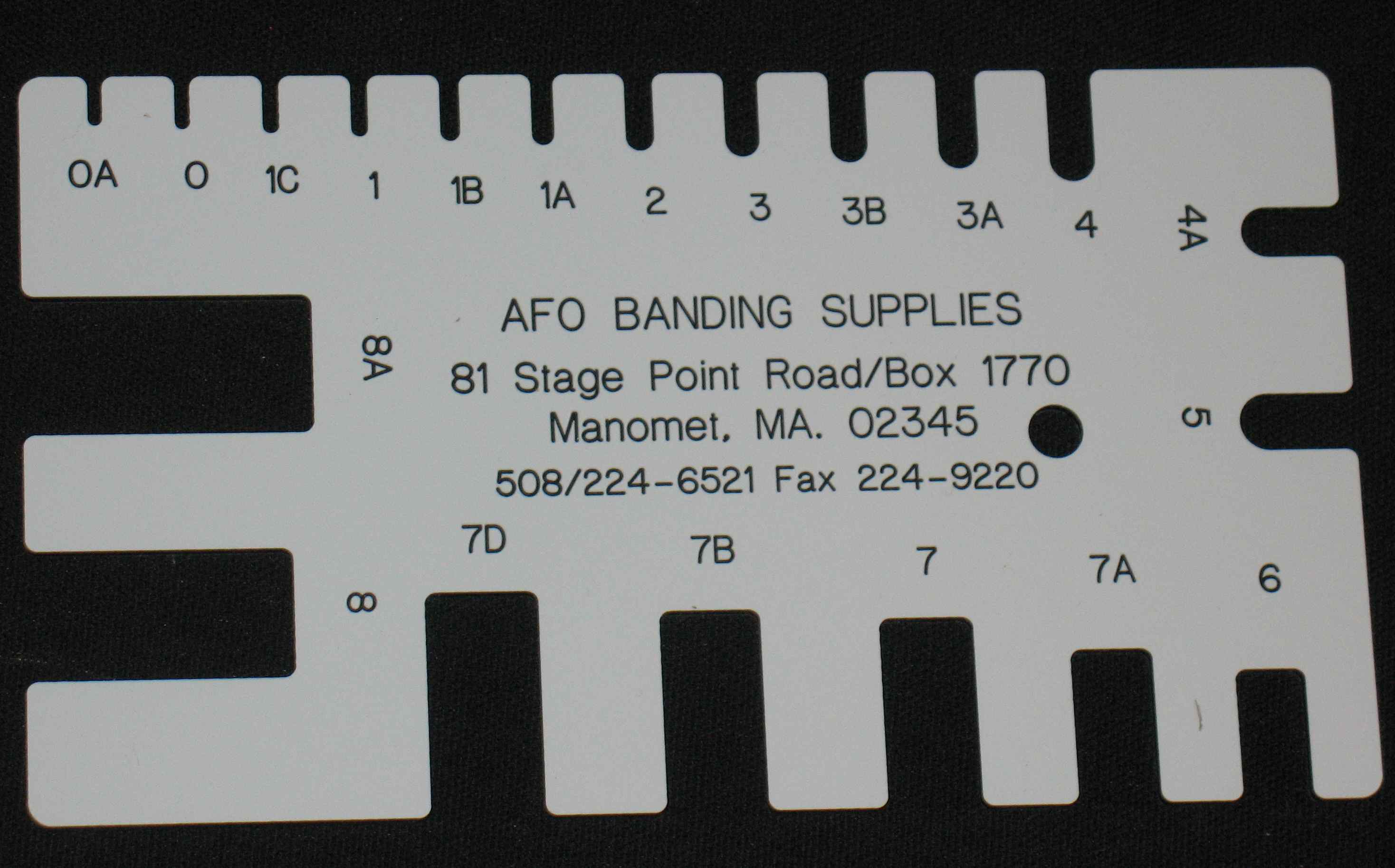 You measure a leg by fitting the gauge slot over the widest dimension of the leg. For a junco, I might try 1C and find that the leg doesn’t fit; try 1, and it fits; try 1B, and find that there is extra space. Then I would choose a size 1 band.