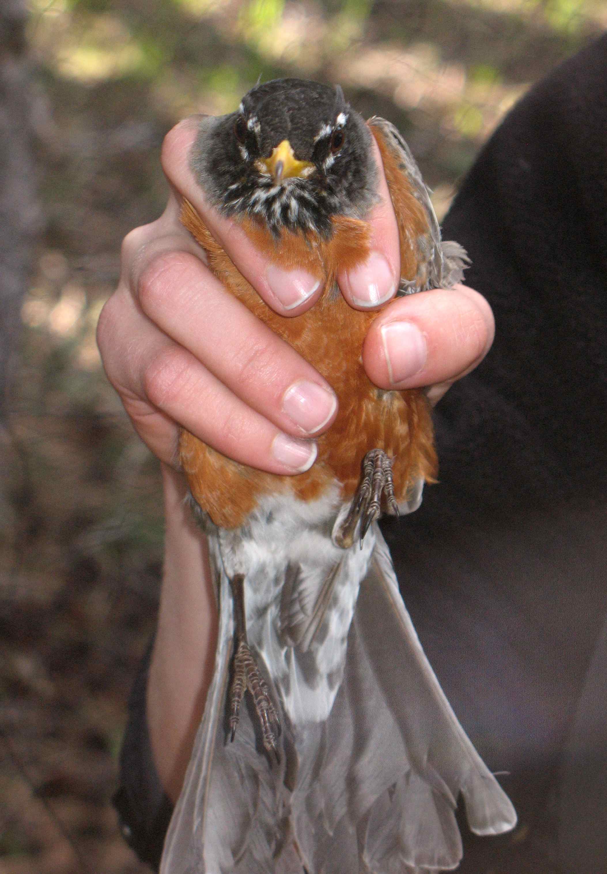 Last week we caught two male American Robins, three Yellow-rumped Warblers, and one male Golden-crowned Kinglet.
