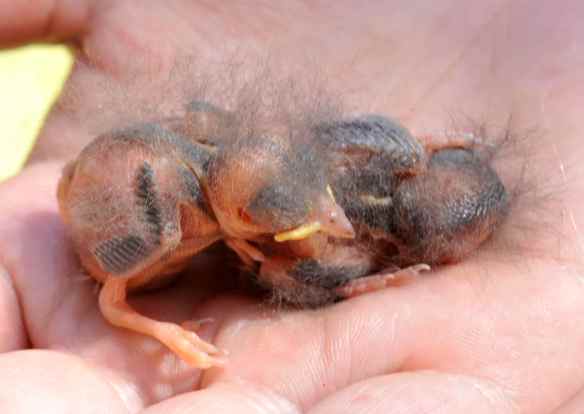 If you find a young, naked chick, your best option is to put it back in the nest. The parents will find it there and care for it as if it never fell out, and everyone’s happy. (Don’t worry about getting your smell on the chick. That popular factoid is a myth: birds will not reject chicks that have human smell on them.)