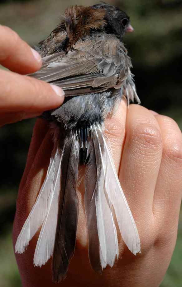 Interesting (about the signaling with their white feathers)! I didn’t realize they could grow back… And kudos to this little guy for his escape… :)