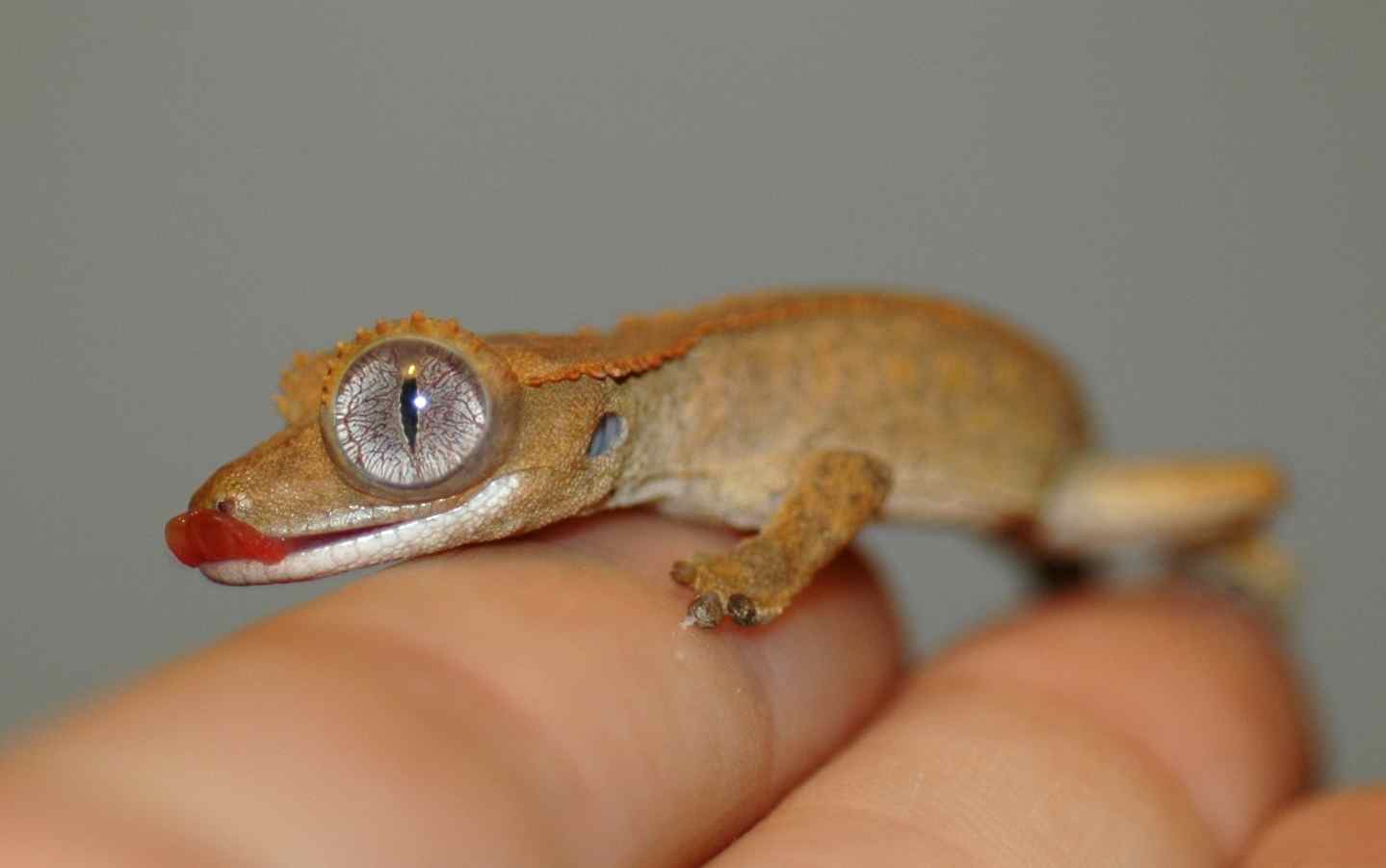 The baby crested geckos are almost three months old now. Both hatched at 1.9 grams; October now weighs 3.3 g, which isn’t bad. (Geckos have a rather different growth rate than juncos, you’ll notice: juncos hatch at about 2 g and are at 3+ the next day!)