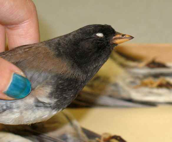 The other juncos are dead, but they do have some redeeming qualities. The museum has a collection of junco specimens dating back over a hundred years, making it possible to track the evolution of certain characters over that century. It’s pretty awesome to be able to measure juncos that were alive before my grandparents were born, and strange to look at specimen tags and think, “Just before the Great Depression… end of WWII…”