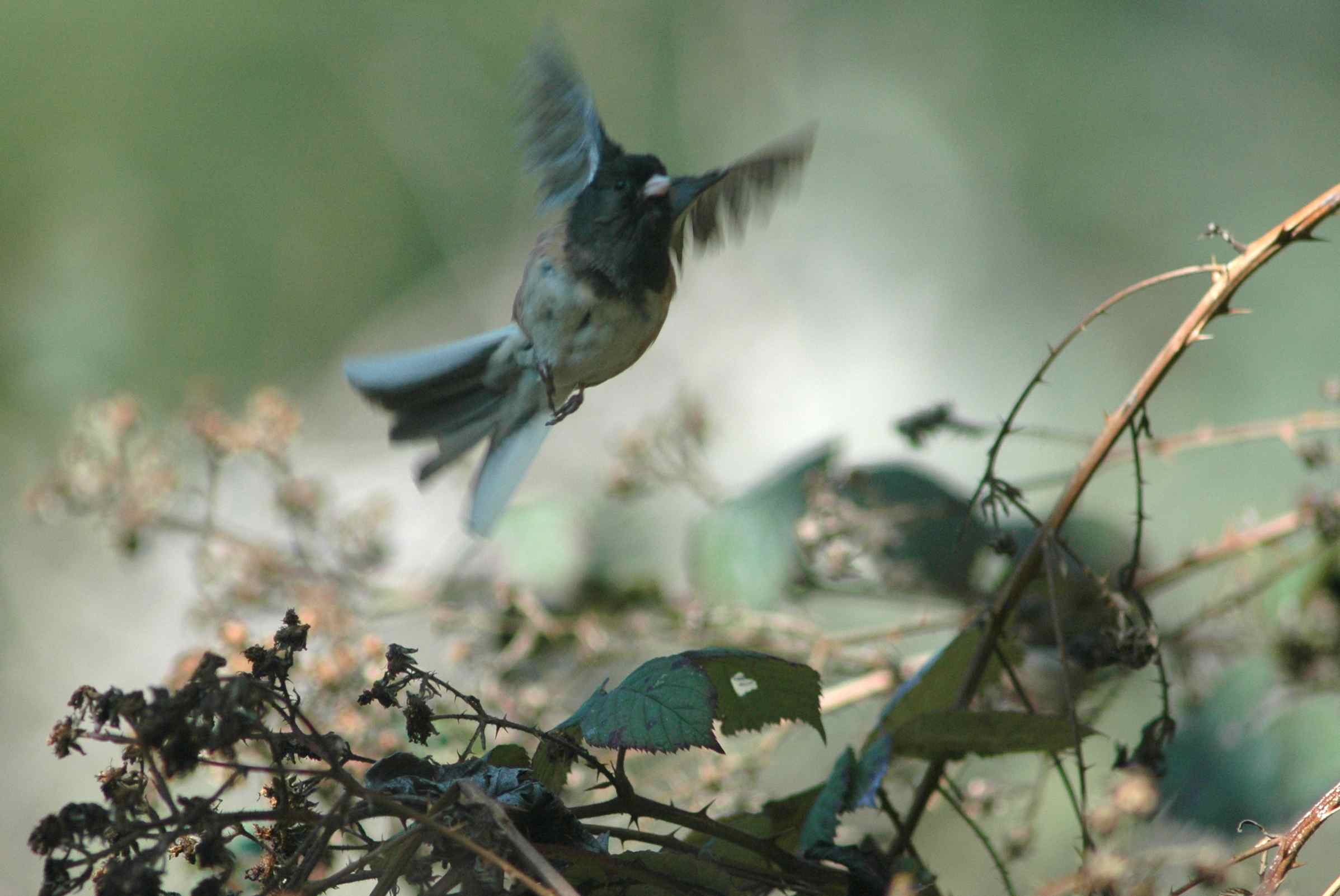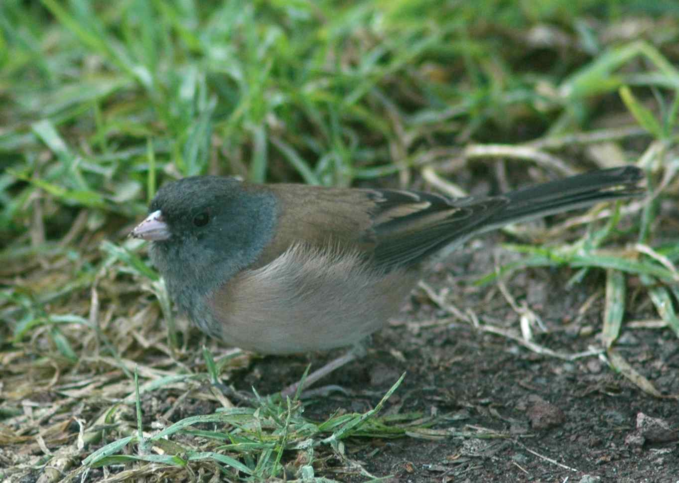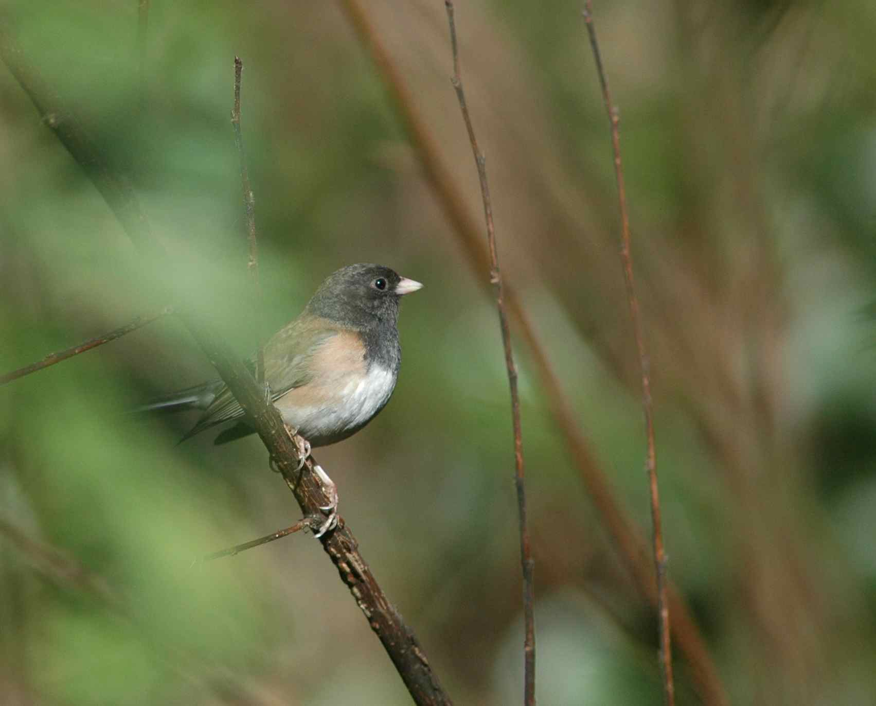 After mentioning my local mutant junco here several times, I figured I owed you a photo, so I went stalking him today. In searching for him I also found lots of normal-looking juncos. I did eventually find my white-splashed bird, so read on to see this unusual junco – after first admiring the regular juncos, because every junco is awesome.