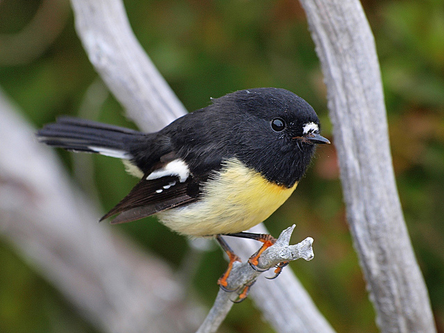 This is the Black Robin (Petroica traversi), a species found only in the Chatham Islands, New Zealand: