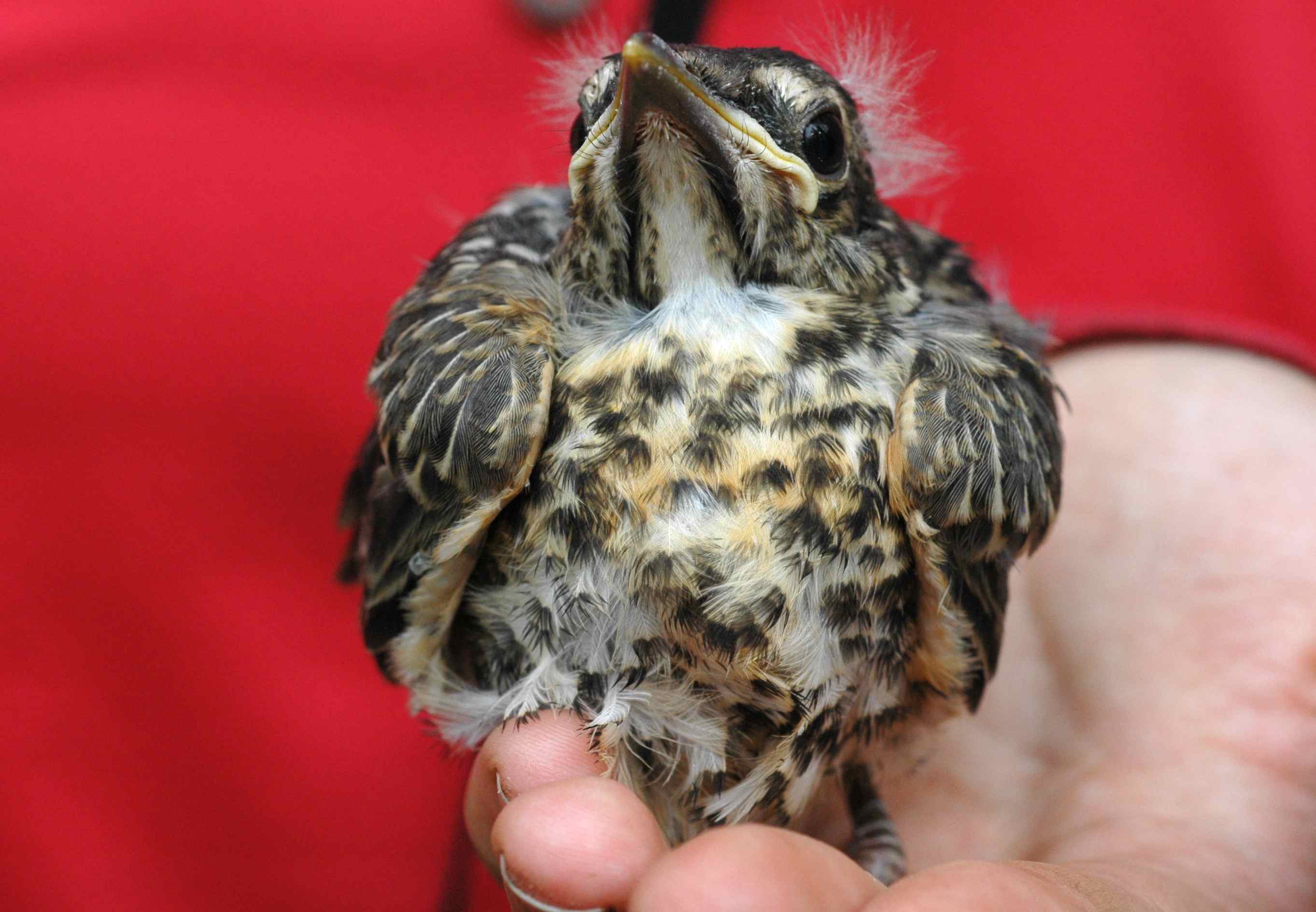 Next time you find a fledgling, leave it where it is. Fledglings are meant to be outside the nest; they hide, and their parents feed them until they can fly. If a baby bird is covered in feathers, it does not need your help, even if it can’t fly yet: the parents will feed it until it grows up enough to fly. Please do not “rescue” baby birds unless they are 1) obviously too young, i.e. NOT covered in feathers, or 2) obviously injured.