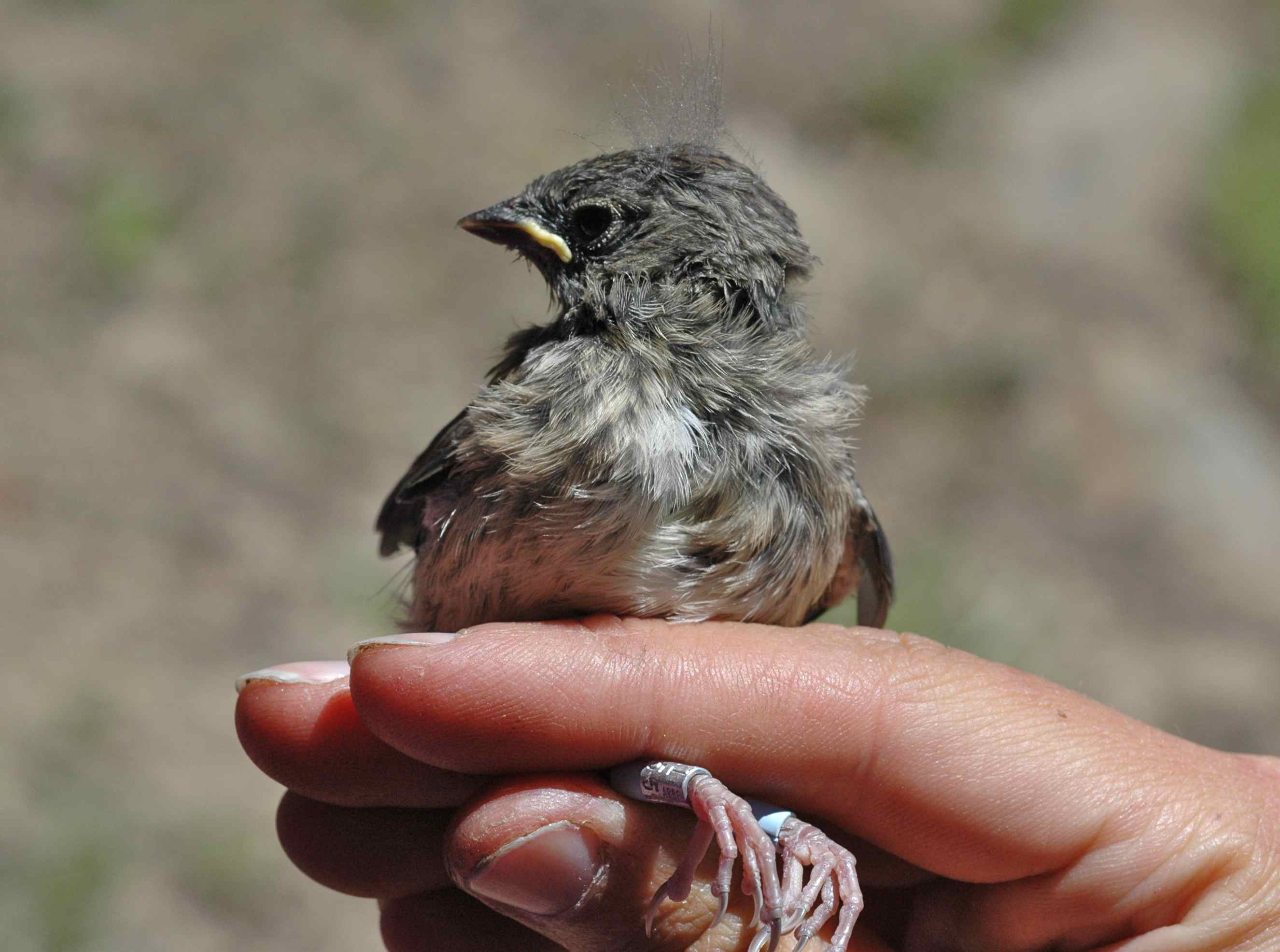 Two hundredth junco Posted on July 15, 2013 by toughlittlebirds YSSA is the two hundredth junco to be banded as part of my junco research. She (or he) is a young fledgling: out of the nest, but not very good at flying yet. Flying! Little baby tail I wonder if we’ll get to three hundred this season. Share this: Click to share on X (Opens in new window) X Click to share on Facebook (Opens in new window) Facebook Like Loading... Related