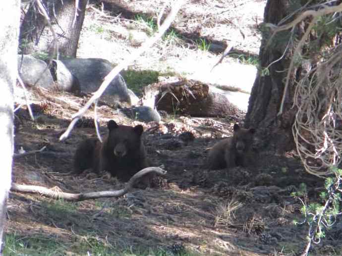 Wanting to be as nonthreatening as possible, I turned and hightailed it back up to where the field assistants were. “There’s a mama bear with cubs,” I said. “We gotta leave.” They told me later that they found this somewhat lacking in vital information—was the bear right behind me? was it coming right now?—but in any case they packed up the net with due haste, found the bears with their binoculars (to make sure they weren’t coming after us) and even took a photo.