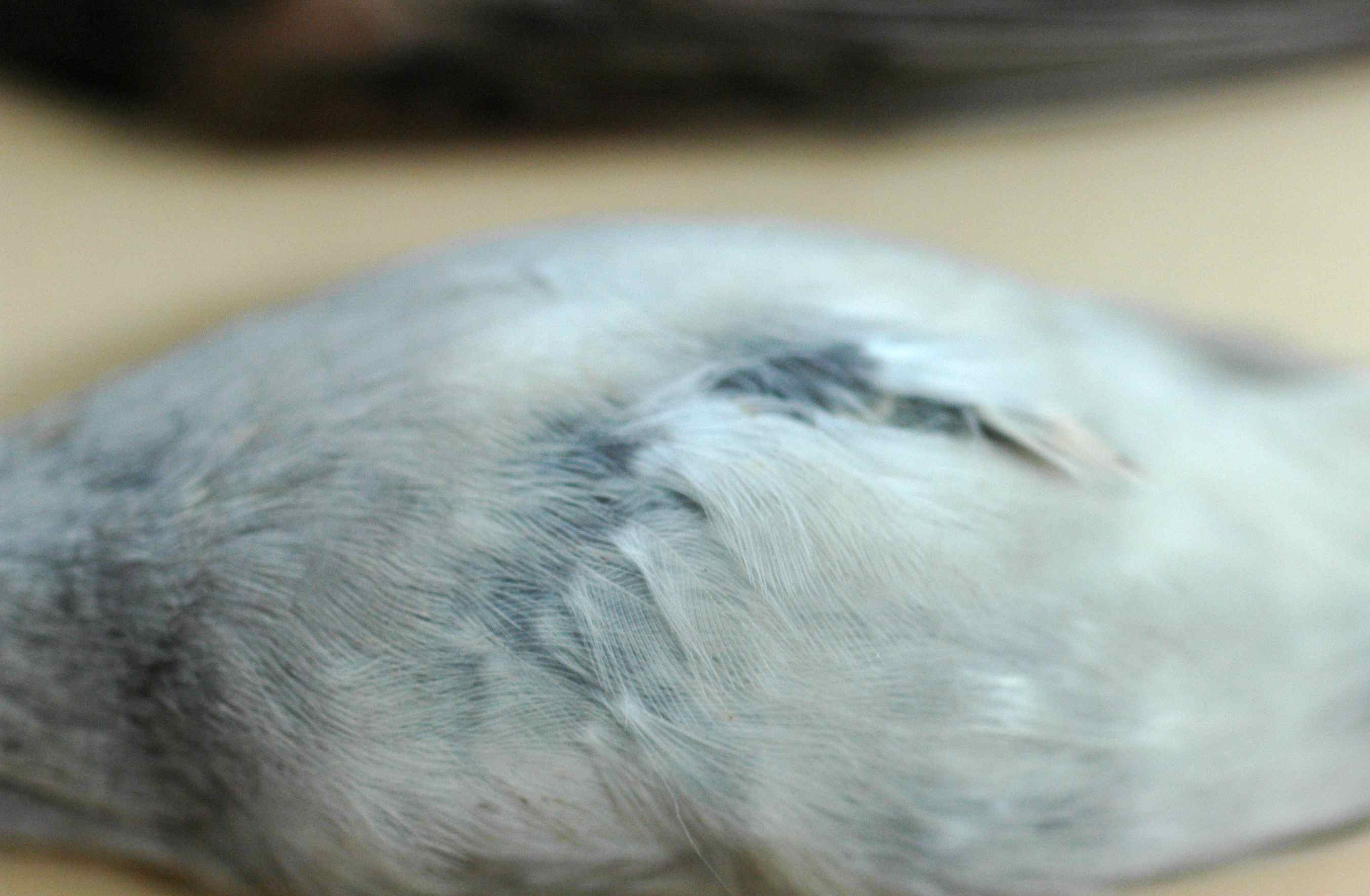 Strangest, to me, is that if I wanted to I could score the amount of white on the silver junco’s tail. Now I don’t mean that I could say “100% white!”—I mean that I could see how much white he would have displayed if he had not had his color abnormality. Where a normal junco has black tailfeathers and white tailfeathers, the silver junco has very light grey tailfeathers and white tailfeathers; the difference is perceptible.