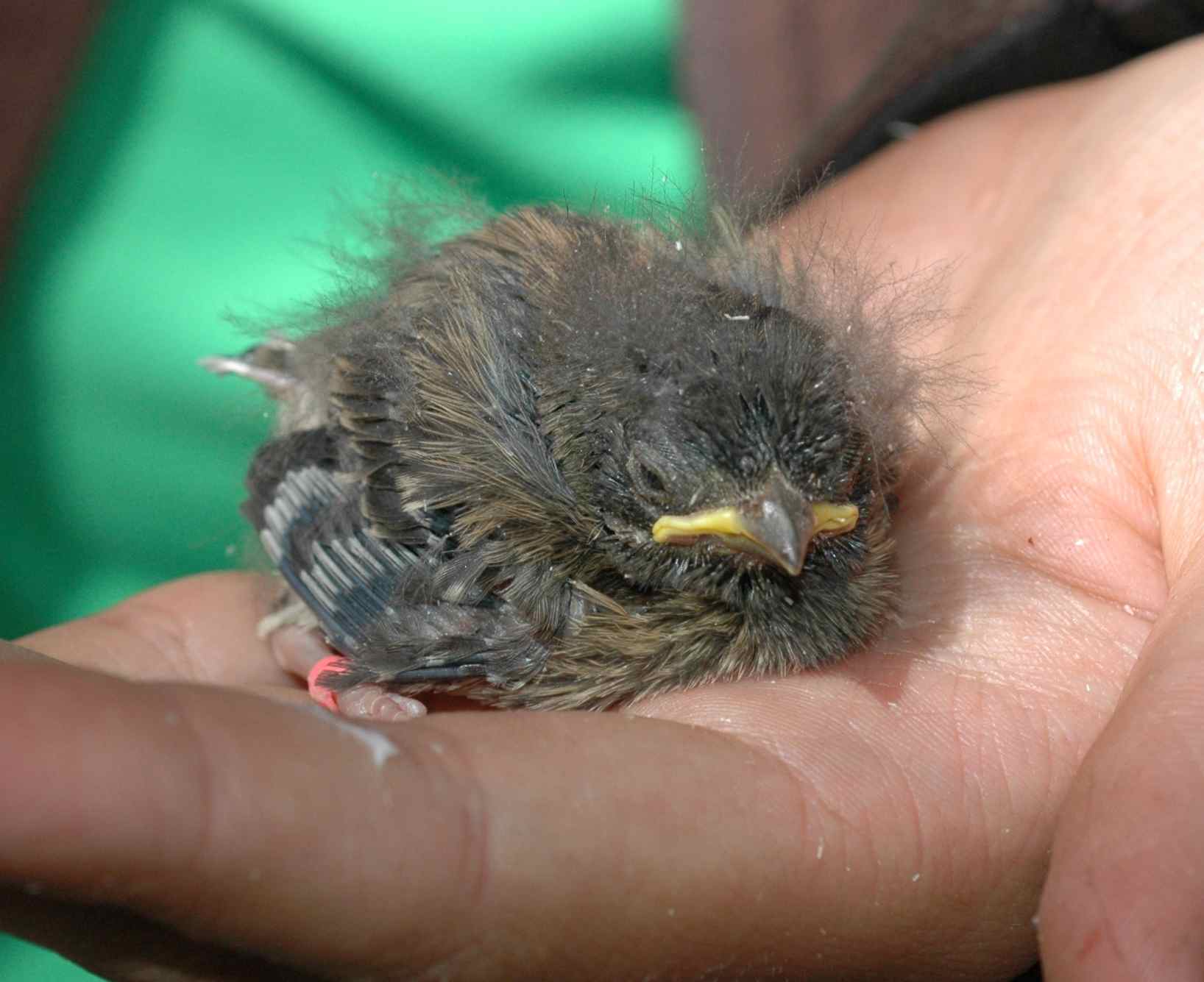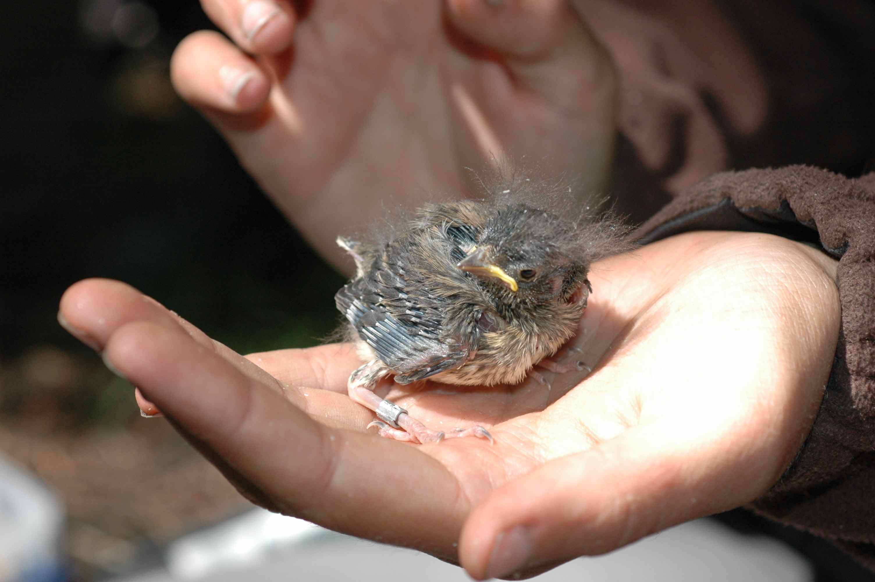 The chicks grew. They were inconveniently aged, for us: the optimal age to band them fell right on the three days when we needed to go home to restock on food. We opted to band them a bit early but use just one band per leg, since their young legs were small.