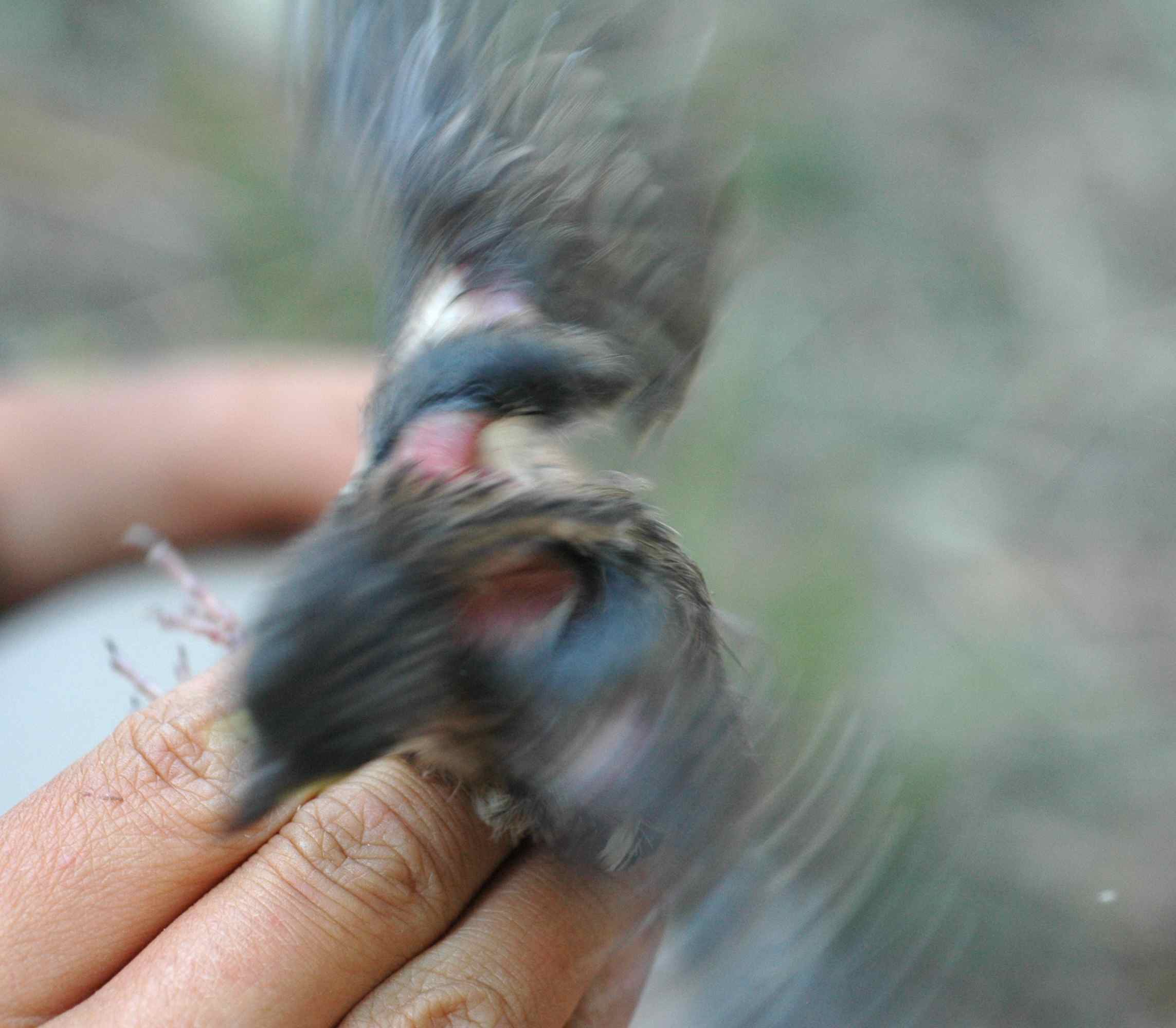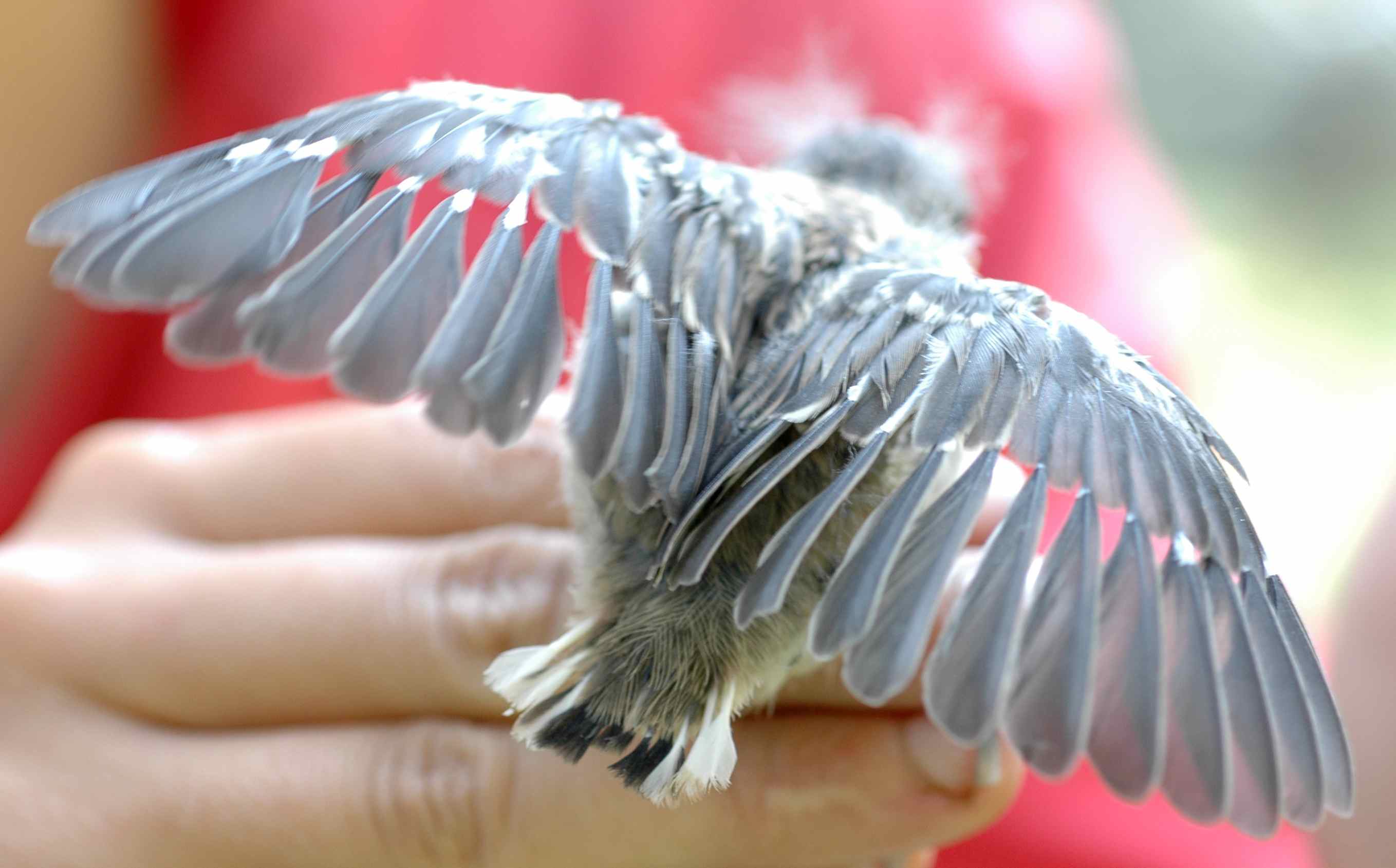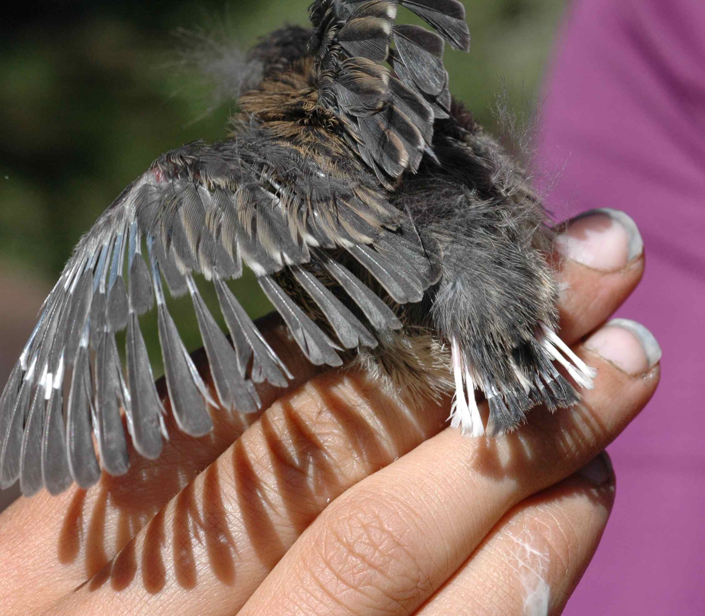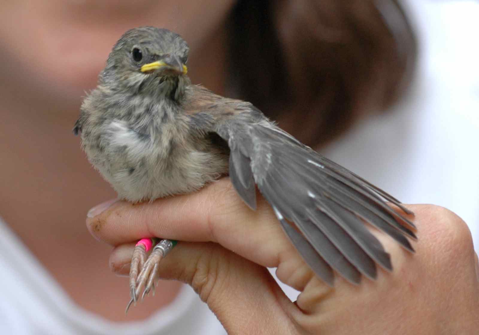 Why do I have these photos? Because we try to photograph every nestling and fledgling to get a sense of their age and development. The feathers in their tails, wings, and along the feather tracts on their bellies and backs all grow in quickly at this stage, giving you information about the age (or, if you know the age, the development for its age) of the bird.