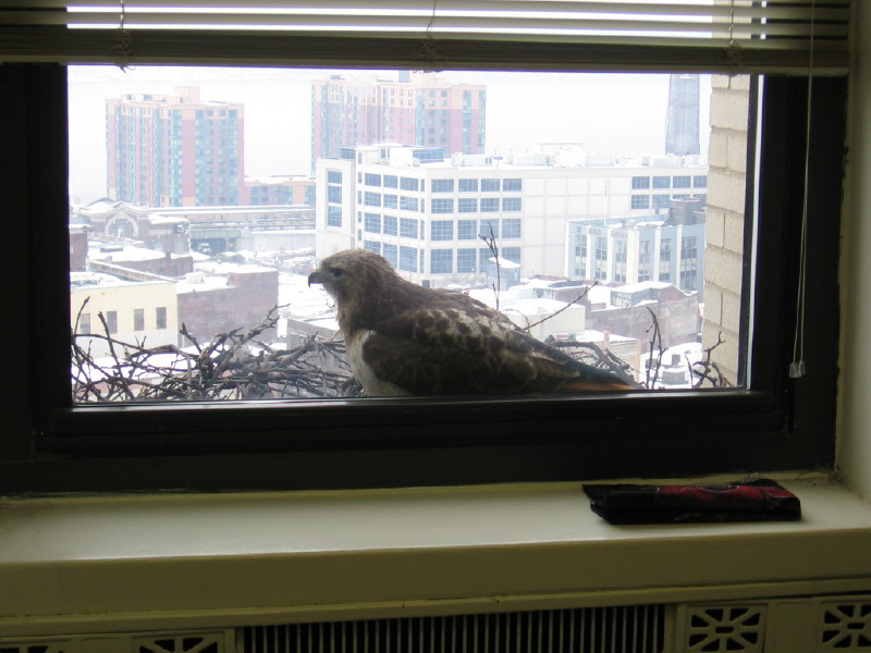 • That’s a good point about the interplay – not only are people watching the hawks through the window, but you can see that the hawks are often looking in through the window at the people.