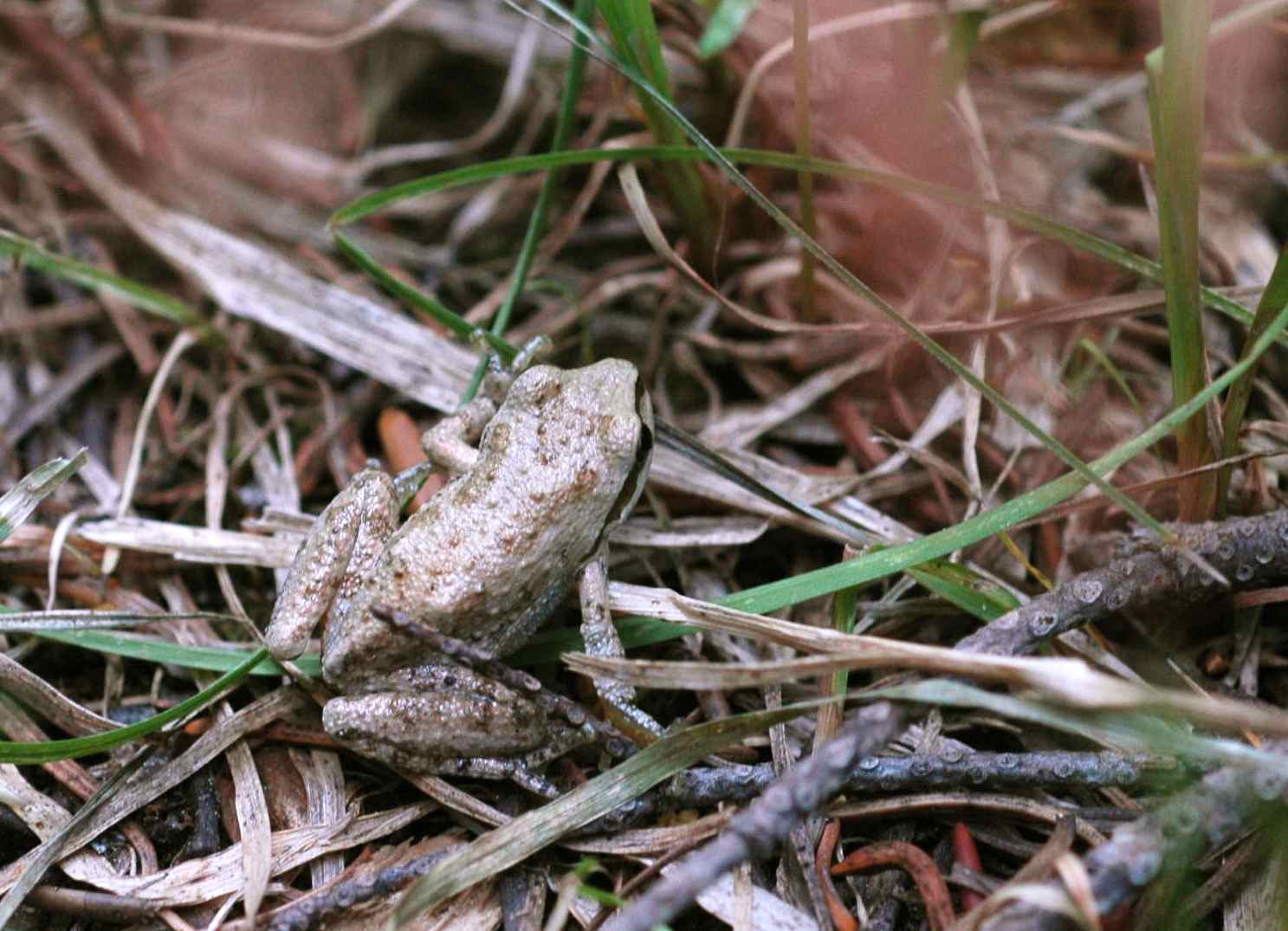Instead, it’s thought that the slow color change helps the frogs match the general environment over the course of a season (Wente & Phillips 2003). An area might start out bright green in spring, then slowly dry out during summer, becoming more and more brown. A frog that gradually changed from green to brown would have a better chance of blending in with that changing background.