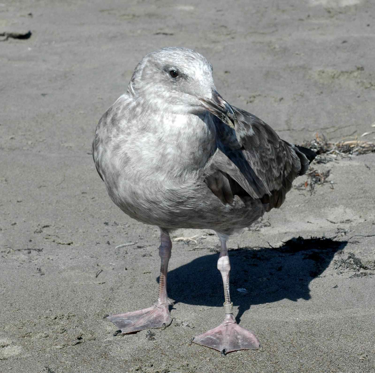 The seagulls on the beach certainly weren’t interested; but yes, there are natural predators of velella. Glaucus nudibranchs (sea slugs), which look even more like extraterrestrials than your average nudibranch, float on the ocean surface and eat velella as well as velella’s more stingy relative, the Portugese man o’ war. Velella is also eaten by purple snails (genus Janthina), which float in the open ocean by hanging on to a “raft” of chitin-enclosed air bubbles.