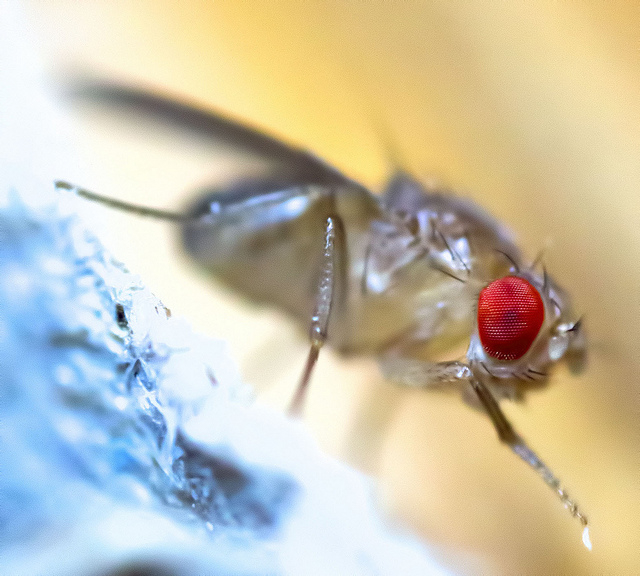 Fruit flies have evolved taste perception independently of vertebrates, but they still taste fairly similar things. Like us, they like sugar and low concentrations of salt, and dislike bitter things and high concentrations of salt. Unlike us, though, they don’t seem to taste umami or sour. Instead, they have a taste perception pathway that is sensitive to carbon dioxide, which lets them detect fermenting things like rotting fruit—which is, after all, what a fruit fly is looking for. Also unlike us, they have taste receptors not only on their mouthparts but also on their wings and legs. If you’re going to spend a lot of time walking on your food, you might as well put some taste receptors on your legs.