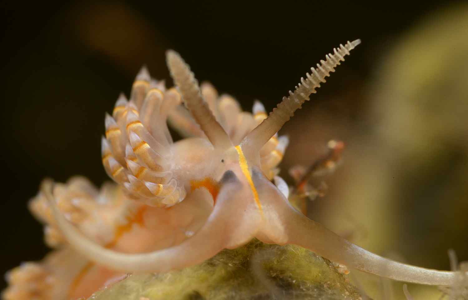 Hermissenda crassicornis may not have a shell, but he is well-defended. Photo by M. LaBarbera