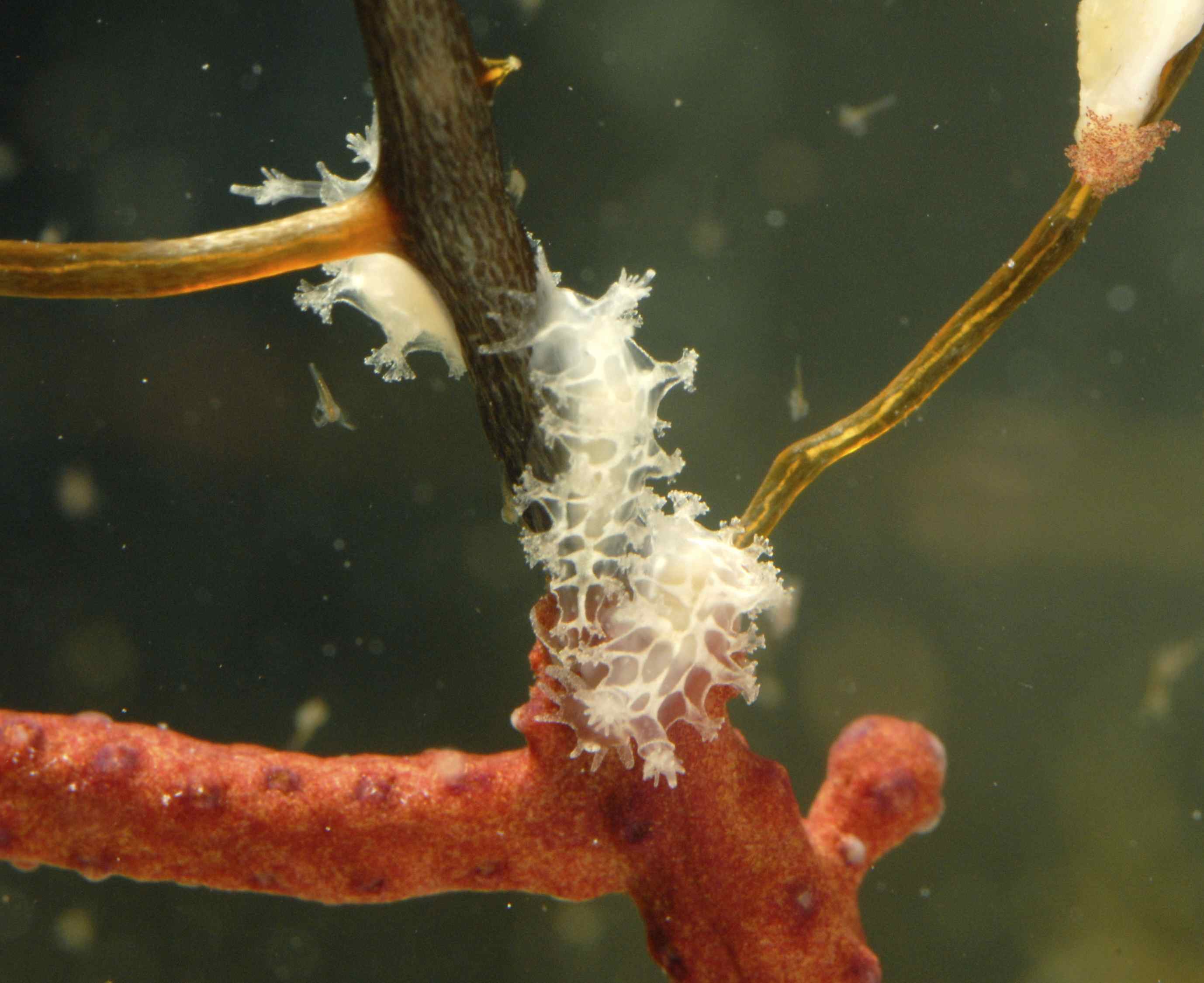 Doridella steinbergi on bryozoan colony. Photo by M. LaBarbera