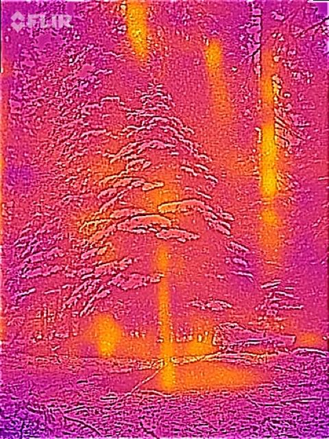 In a rather eerie effect, the coldness of snow makes trees appear warm.
