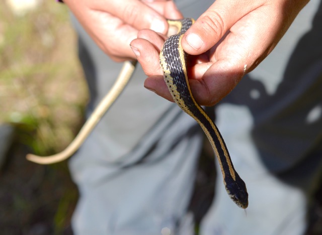 In the spirit of nondisruptive observation, I should have left the snake where he was. But I’m partial. I walked the snake a good distance away until I thought he would not be able to find his way back to the nest, and let him go.