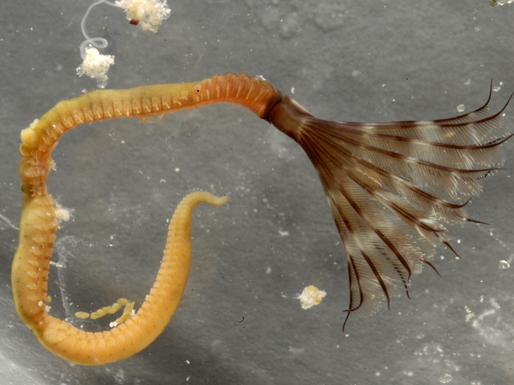 Notaulax_nodicollis__0091r Published December 2, 2015 at 1024 × 768 in Hidden worlds: whale falls That same polychaete outside of its tube: there’s the rest of its wormy body! Photo by M. LaBarbera