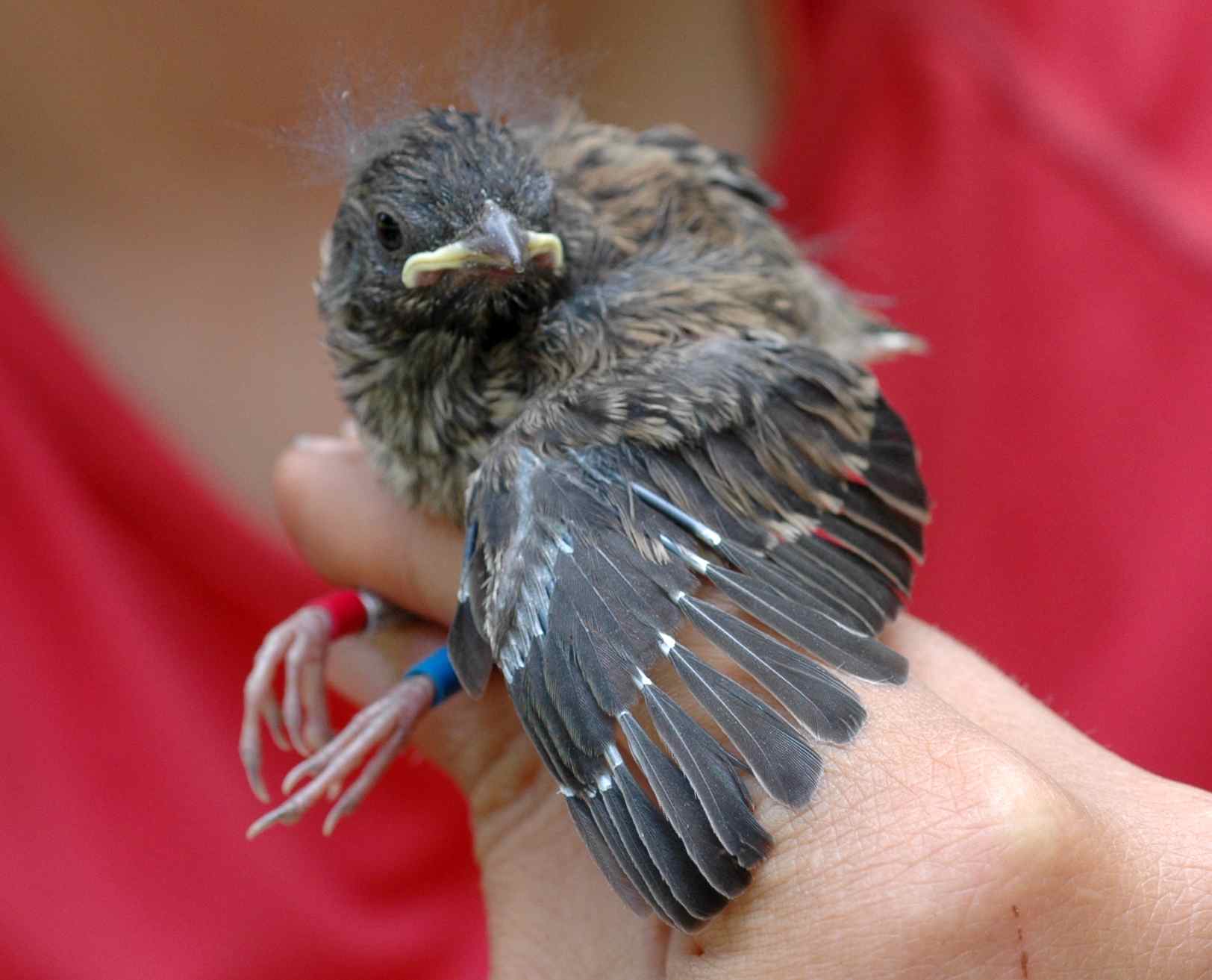 For some reason, lots of junco nestlings and young fledglings really believe they can fly.